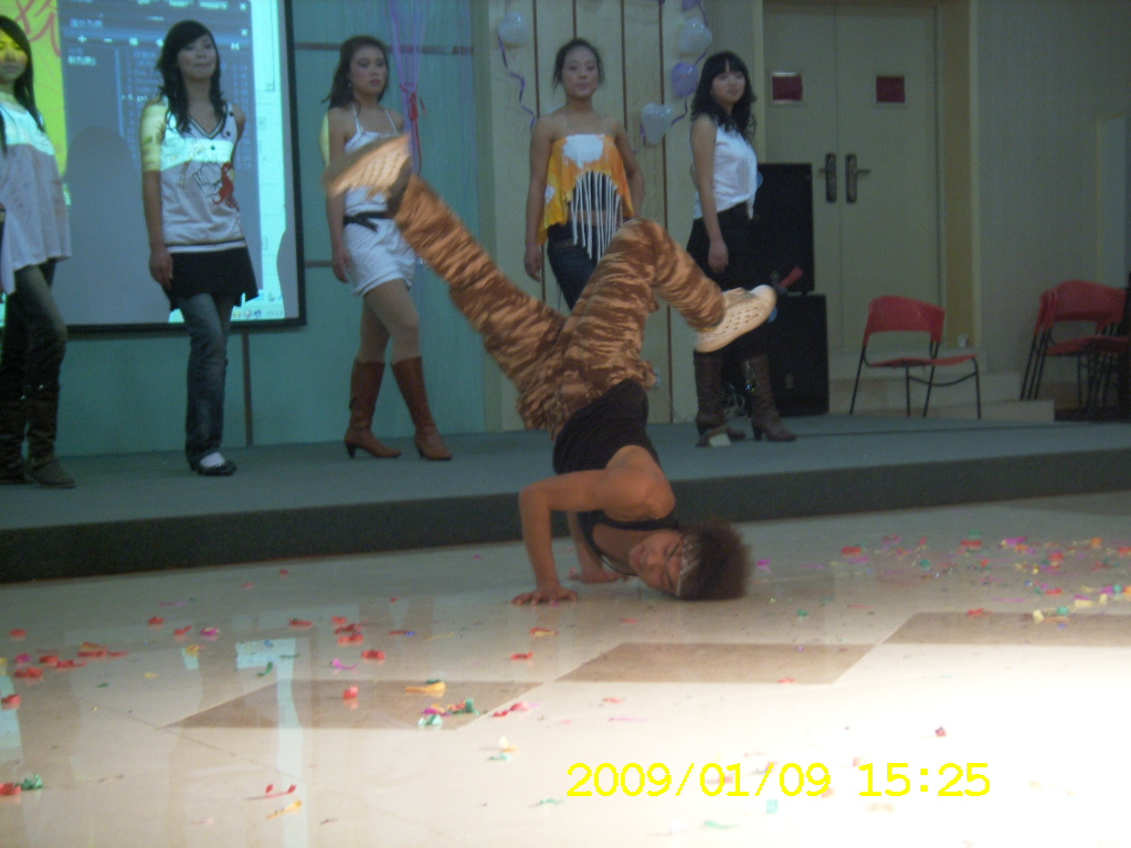 伴随着新年的钟声敲响,迎来了体育系2009年的第一个联欢会。联欢会里同学的表现异彩纷呈,有时尚的T台秀、有朝气的舞蹈、有幽默的小品、还有异域串烧、炫目的街舞、玄妙的剑术,尽展我们体育系同学的风采、个性。