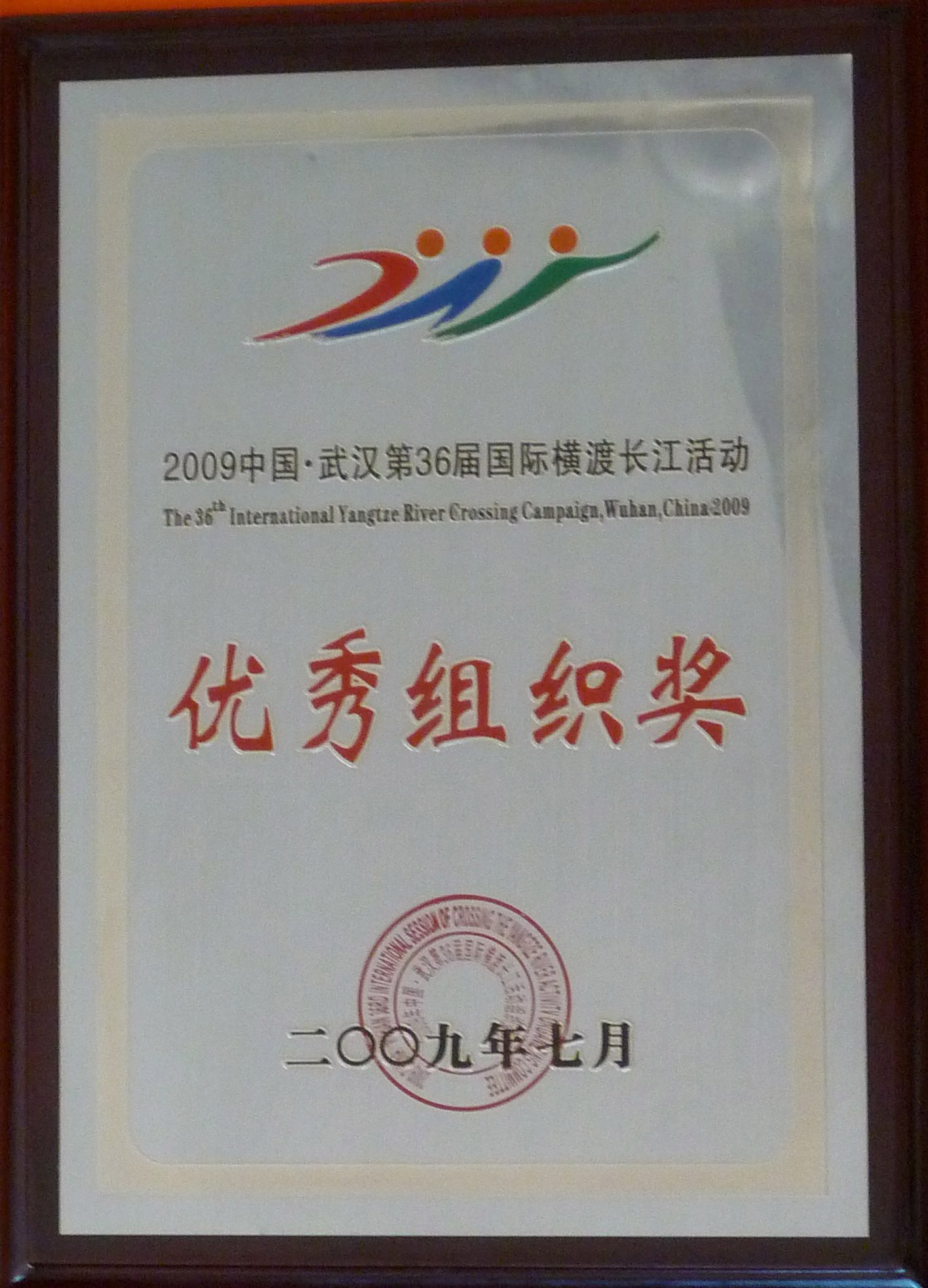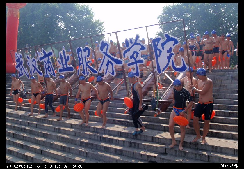 同时,在横渡长江活动中,我校整齐协调的方阵队形得到了组委会的一致肯定,获得了组委会颁发的最佳组织奖。
