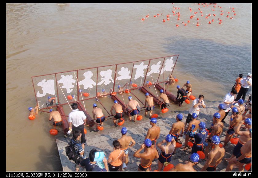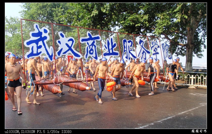 “商院商院,勇往直前!”响亮的口号在汉阳门码头前回荡,伴着震天的威风锣鼓,7月16日上午,60名游泳健儿组成的我校方阵在武昌汉阳门下水,代表我校参加第36届国际横渡长江活动。