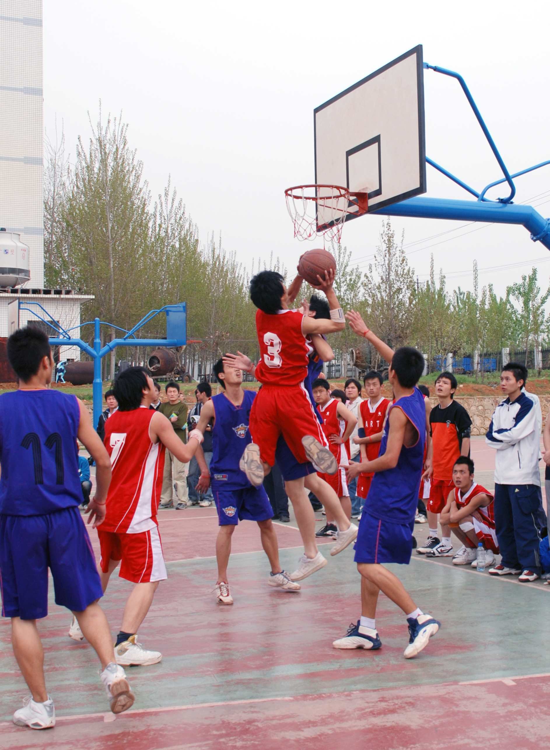 篮球场上的积极拼抢,吸引了众多师生观看。