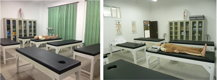 体育保健学实验室建筑面积约49平米,设备价值约85,620元,教学仪器设备有超短波治疗仪、身高体重计、血压计、心肺复苏模拟人、包扎用品等,主要用于体育保健学、运动损伤学、体育测量与评价、赛马安全防范与救护等课程的教学与实践,主要实验项目有止血、包扎、骨折、脱位的临时固定方法、伤员的搬运方法、心肺复苏术、按摩的基本手法、按摩手法在运动中的应用、运动处方的制定等。