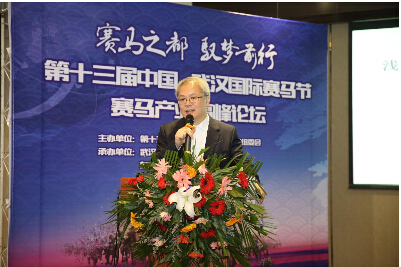 东方神马实业武汉有限公司总裁胡越高畅谈了赛马经济在中国的前景,指出“师夷长技以制夷”,用日本赛马的历史的体制改革与我国的赛马产业进行比较,提出中国特色的马彩开禁发展“三步走”战略。