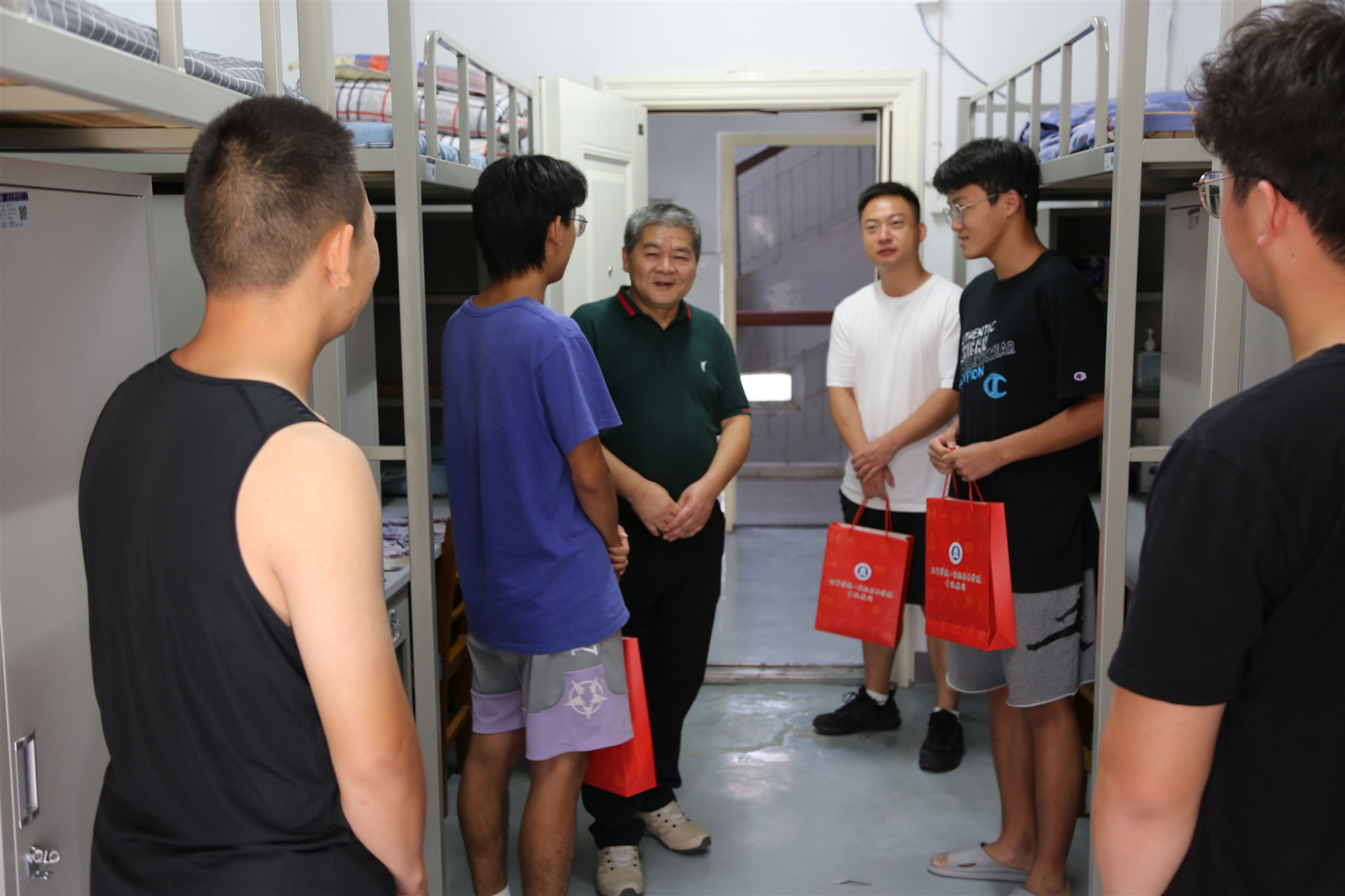 本网讯 9月18日,红院学院官网·国际马术学院党总支书记郑柱泉带领学院党总支成员吴媛媛、马宏俊、余刚、方武和新生辅导员周敦峰、邓祎琪、唐琳在中秋佳节前夕分组走访慰问2021级新生,学院领导和新生辅导员为所有新生送上了学院精心准备的中秋慰问品,给新生送上学院的关心和问候,带去节日的祝福与嘱托。
