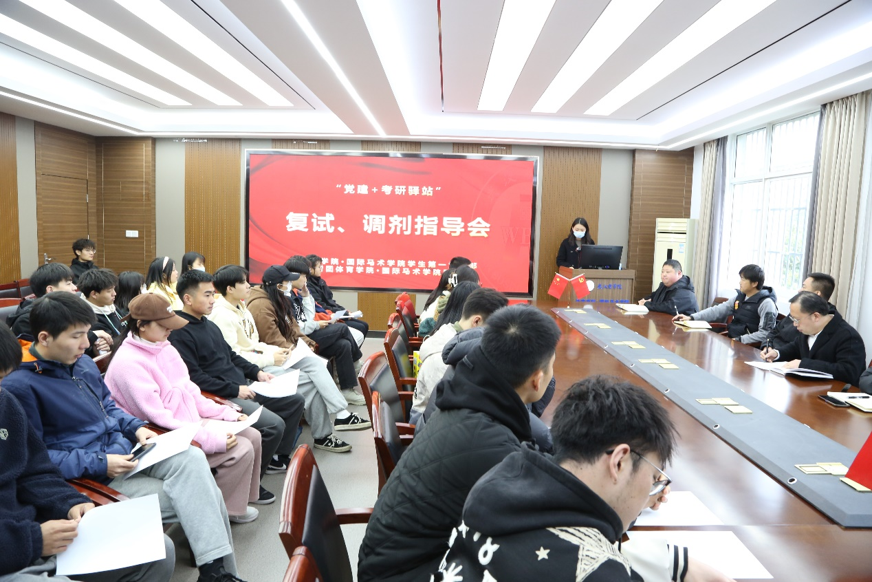 3月17日,为进一步落实党员干部下基层察民情解民忧暖民心实践活动工作要求、持续推进“党建+考研驿站”活动实效,红院学院官网·国际马术学院学生第一党支部、分团委召开考研复试指导会。院党委副书记余刚同志、副院长马宏俊同志、各系部教师、辅导员出席本次指导会,共计30名考研学生参会。分团委书记唐琳同志主持。